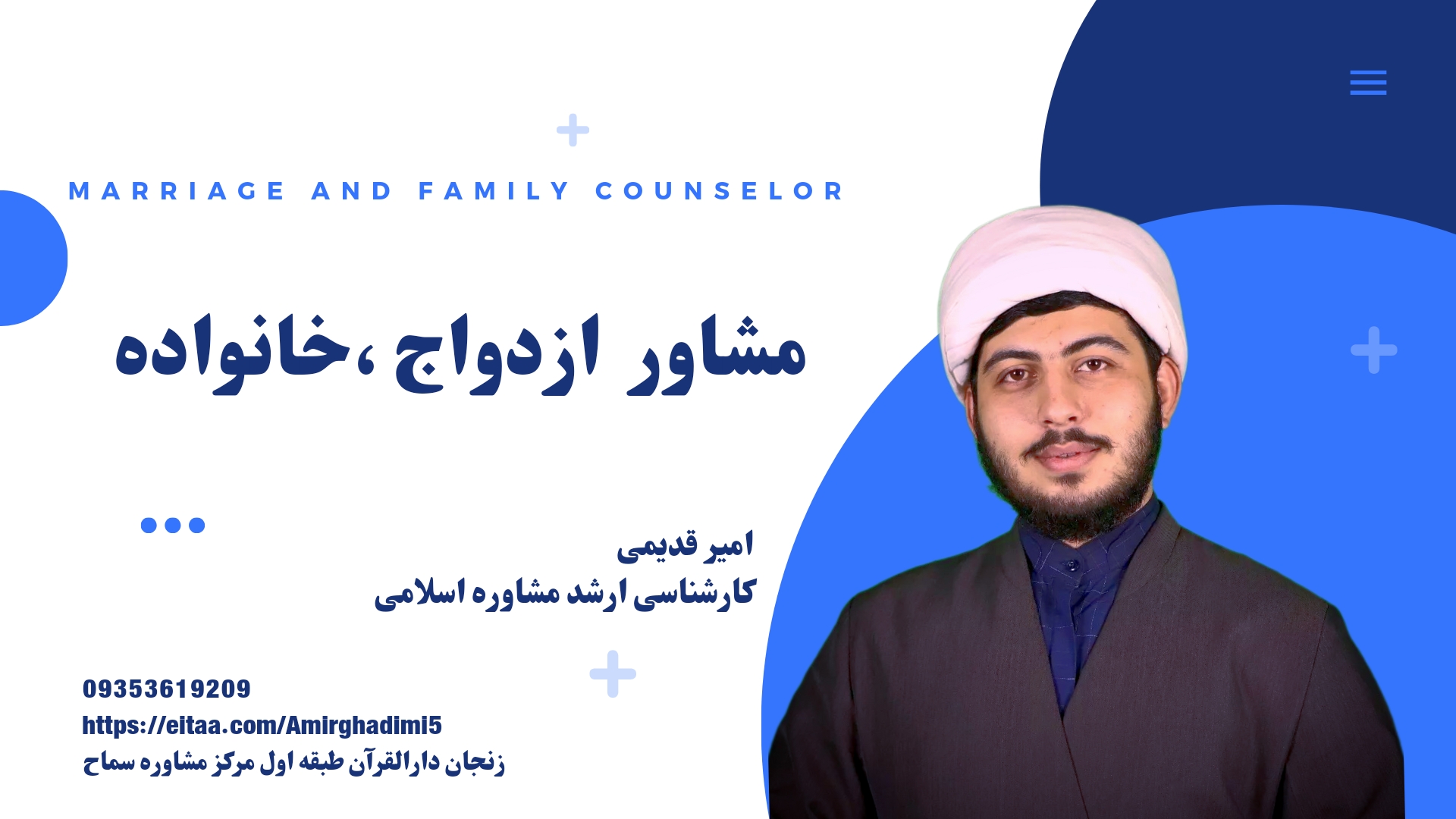 امیر قدیمی در زمینه های مشاوره مانند ازدواج و خانواده مراجعه کننده می پذیرد.