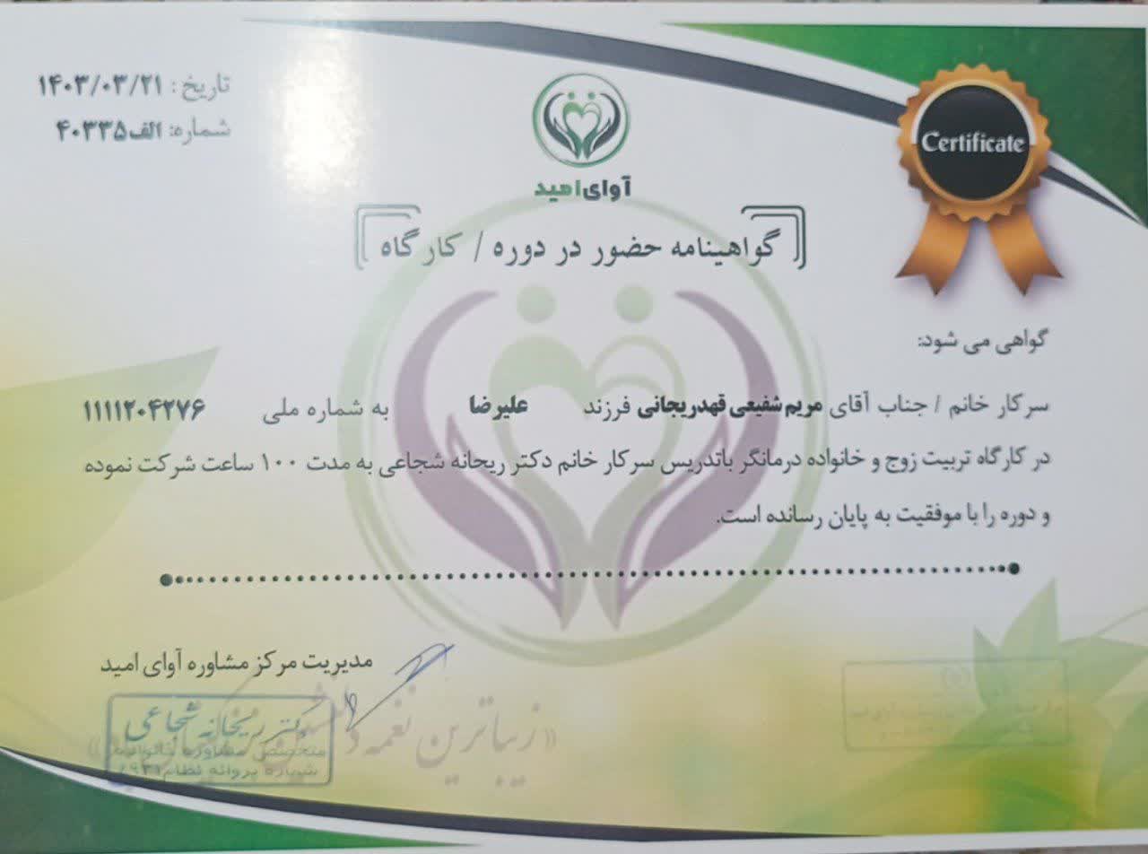 “مریم شفیعی قهدریجانی” پاسخ ها